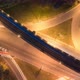 Top down view of Train Overpass and City Streets at Night timelapse.