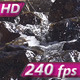 The water in the mountain stream of ice build-up in the sun. Slow Motion at a rate of 240 fps