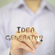 Man, Businessman, entrepreneur, stock trader, analyst or banker writes on transparent wall : Idea Generation