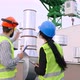 In front of the camera group of engineers and assistant have a discussing on top of construction site they analyzing something using digital tablet. Shot on ARRI Alexa