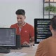Waist up slowmo of Indian programmers typing program codes on computers in IT office