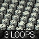 A set of 3 looping camera moves over an infinite, well ordered, array of dice.