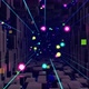 Information Technology concept. Space scene. Blue dark sci fi bg fly through tech digital space like in tunnel neon light. Hi-tech information flow in blockchain or bigdata. 3d looped bg motion design