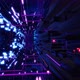 Blue dark sci-fi bg fly through tech digital space like in tunnel with neon light. Concept of hi-tech information flow, blockchain. 3d looped bg motion design, cubes and spheres, constructions. Dark dynamic bg, complex technogenic environment,