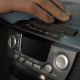 Video of a male hand putting a CD disc into a compact disc player tray, as if preparing to listen to music, an audiobook or podcast.