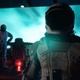 The astronaut leave the control room and walk along the corridor of the interstellar spacecraft. The animation is for fantastic, the futuristic or space travel backgrounds. View of the futuristic spaceship in the space.