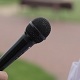 Television, interviews, news, microphone, white, black, shirt