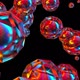 Balls enclosed in rhombic mesh 3d render sweep across surface. Holographic shapes with gradient reflection metallic and graphic gloss in spherical reflections.