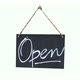 Isolated Swinging And Looping Rustic Hanging Blackboard Open Sign On A White Background