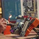 It Boy Is Soldering Electronic Circuit And Works With Computer In Home, Display Showing Cad Software, Genius Children Concept