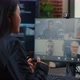It startup employee in video call conference with client team discussing coding project deadline. Programer having online chat with clients and business owner about source code.