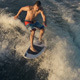 Above view of athletic man riding surf