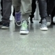 A video of a group of people’s feet walking forward firmly towards a destination or a certain goal.