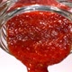 Ketchup or Red Sauce is Pouring out from a Glass Bottle Macro in Slow Motion White Background Tabletop
