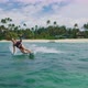 Beautiful young woman kiteboarding in slow motion, active lifestyle extreme sport