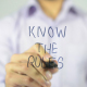 Man, Businessman, entrepreneur, creative designer, freelancer writes and draws on transparent wall : Know the Rules