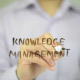 Man, teacher, student, professor writes on transparent wall : Knowledge Management
