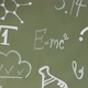 Background with inscriptions from the school course. Formulas are written on a chalk board. Learning concept. back to school
