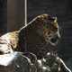 TRACKING: Portrait of Leopard resting in the zoo cage