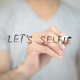 Man writes on Transparent screen : Let’s Selfie