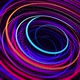 Light flow form ring structure. Light effect as abstract looped background with light trails, stream of multicolor neon lines in space form rings. Modern trendy motion design background