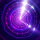 This stock motion graphics video shows a futuristic circular sound tunnel with an audio spectrum, equalizer, and particles.