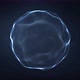 Looped liquid sphere motion element made of particles on dark background.