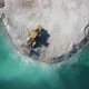View from above of marina construction, construction vehicles working at seaside, drone view of marina construction machinery