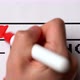 Loading line. The download process. A hand with a red marker strokes the loading strip on white paper.