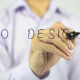 Man, Creative Designer, software engineer, freelancer or employee writes on transparent screen : Logo design