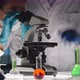 Closeup shot of woman using microscope for scientific research at the table in laboratory
