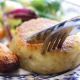 High quality studio video shot in high key – fish or meat cutlet is being cut with knife and fork with vegetable salad and grilled potatoes on the background. Good illustrative clip about healthy lifestyle and diet, restaurant business and festive table.