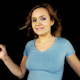 Beautiful young blond woman dances in tight top.