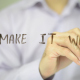 Man, Businessman, entrepreneur, stock trader, analyst or banker writes on transparent wall : Make It Work