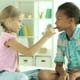 Preteen girls using cosmetics for the first time