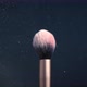 Makeup brush with a highlighter that effectively spreads in different directions. Dark background, minimalism, copy space. Make-up, cosmetics, visage concept.