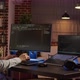 Male programmer coding encryption on security software, using binary code and programming firewall system for development. Hacking application network program script. Handheld shot.