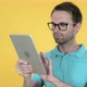 Young Man Browsing Internet, Using Tablet