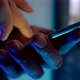 man is using mobile phone in darkness, tapping and swiping on screen, closeup of palms and smartphone
