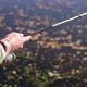 Man reeling in spinner fishing rod. High Speed/Slow Motion