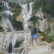 Man Standing In Front of Waterfall With Open Arms, Video in 4k