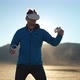 Man using VR headset and moving in the virtual reality, 4k stock footage