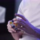 Man wearing EEG topographer for examining brain, doctor making electrogram of scalp activity. Researching of brain work using electroencephalography headset.