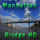 A view of the Manhattan Bridge and the East River as seen from Brooklyn to New York City with moving clouds.