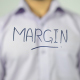Man, Businessman, Manager is writing on transparent screen ( wall ) : Margin.