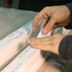 factory worker marking window’s section in FullHD