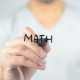 Young Man, writes and draws on transparent wall : Math