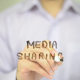 Man, Businessman, entrepreneur, freelancer, software engineer, programmer writes on transparent wall : Media Sharing
