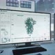 New data received after microscopic analysis. Medical software loading 3D images of SARS-COV-2 spike protein structure. Creating the opportunity to identify the virus molecular composition. UI.