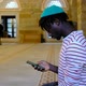 Black Man phone texting message mosque. High Quality footage